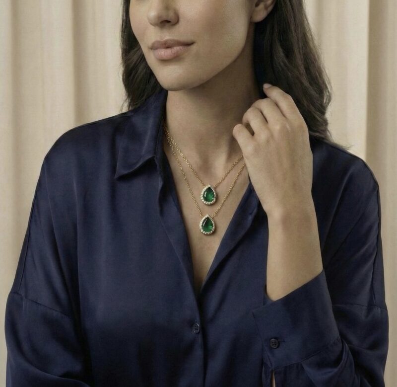 Elevate Your Everyday Elegance with the Emerald Teardrop Layered Necklace
