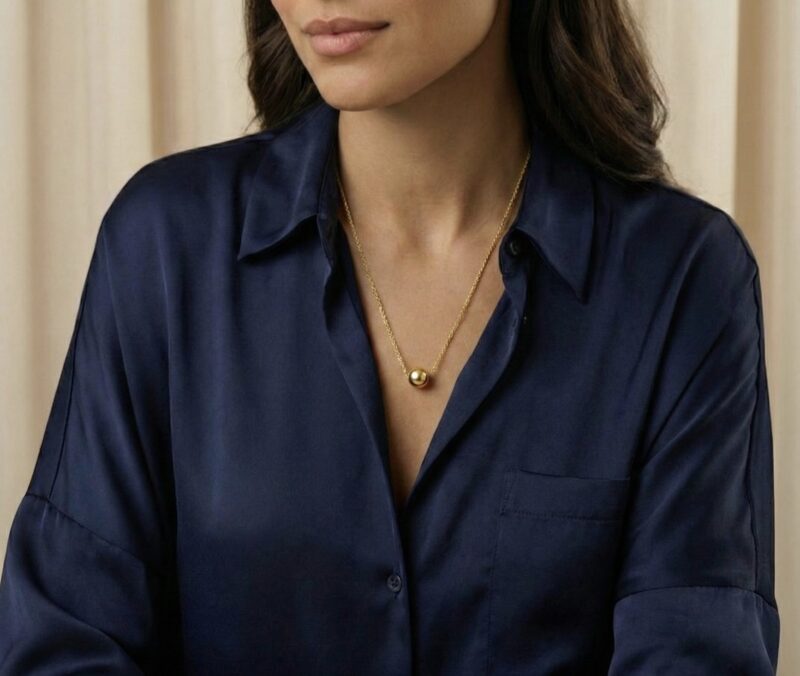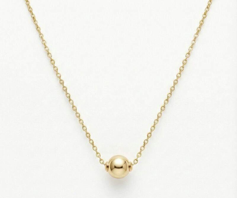 Embrace the modern trend of “less is more” with this stunningly delicate piece. Unlike traditional heavy jewellery, this necklace features a single, polished solid gold sphere that sits gracefully on a fine chain. It captures the timeless elegance of a pearl but is crafted entirely in glowing gold for lasting durability and shine.