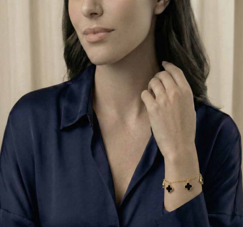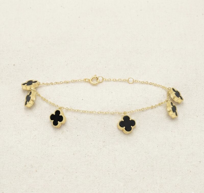 The Midnight Onyx 5-Motif Gold Bracelet – Lucky Clover Collection