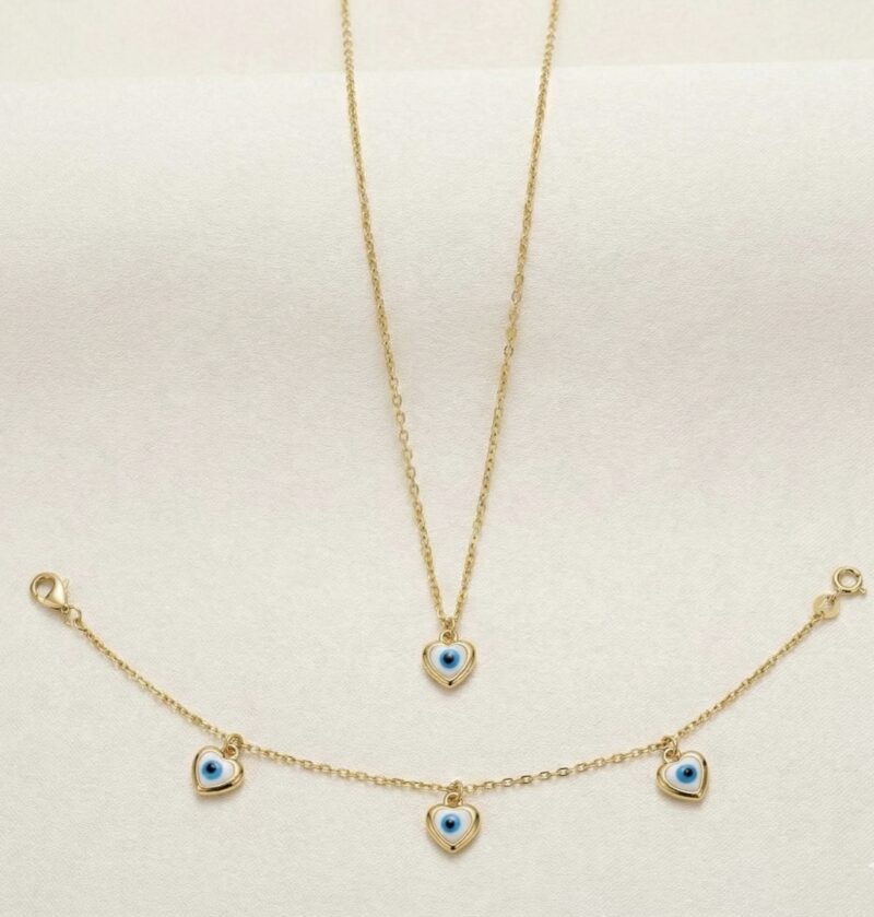 The Nazar Heart Evil Eye Gold Set Necklace & Bracelet