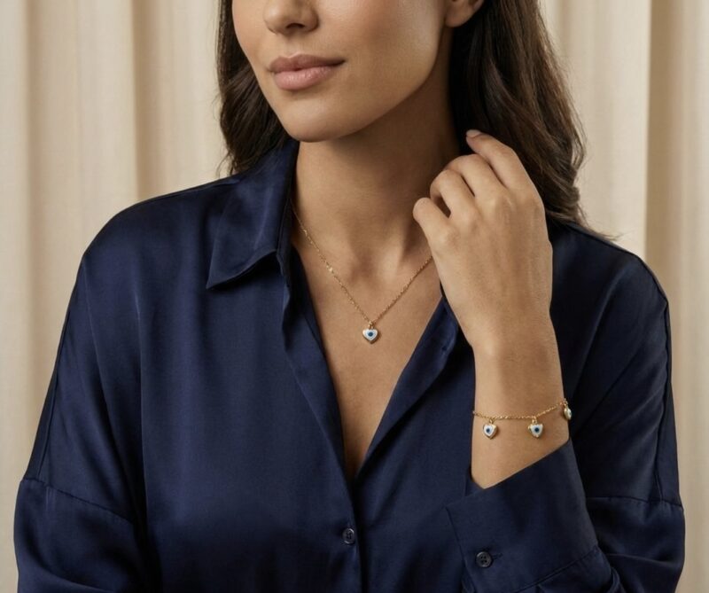 Be the first to review “The Nazar Heart Evil Eye Gold Set Necklace & Bracelet”