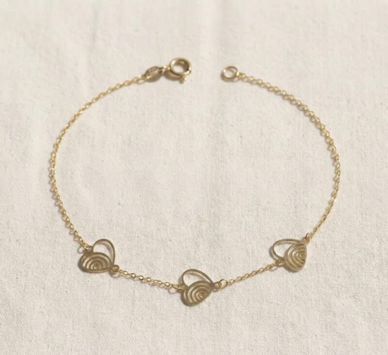 Add a sprinkle of romance to your wrist with our delicate ‘Trio of Hearts’ Bracelet, a new favorite at The Gold Loft. Designed for the dreamer in you, this ultra-fine chain features three open-heart charms, each detailed with a whimsical spiral design that dances in the light.